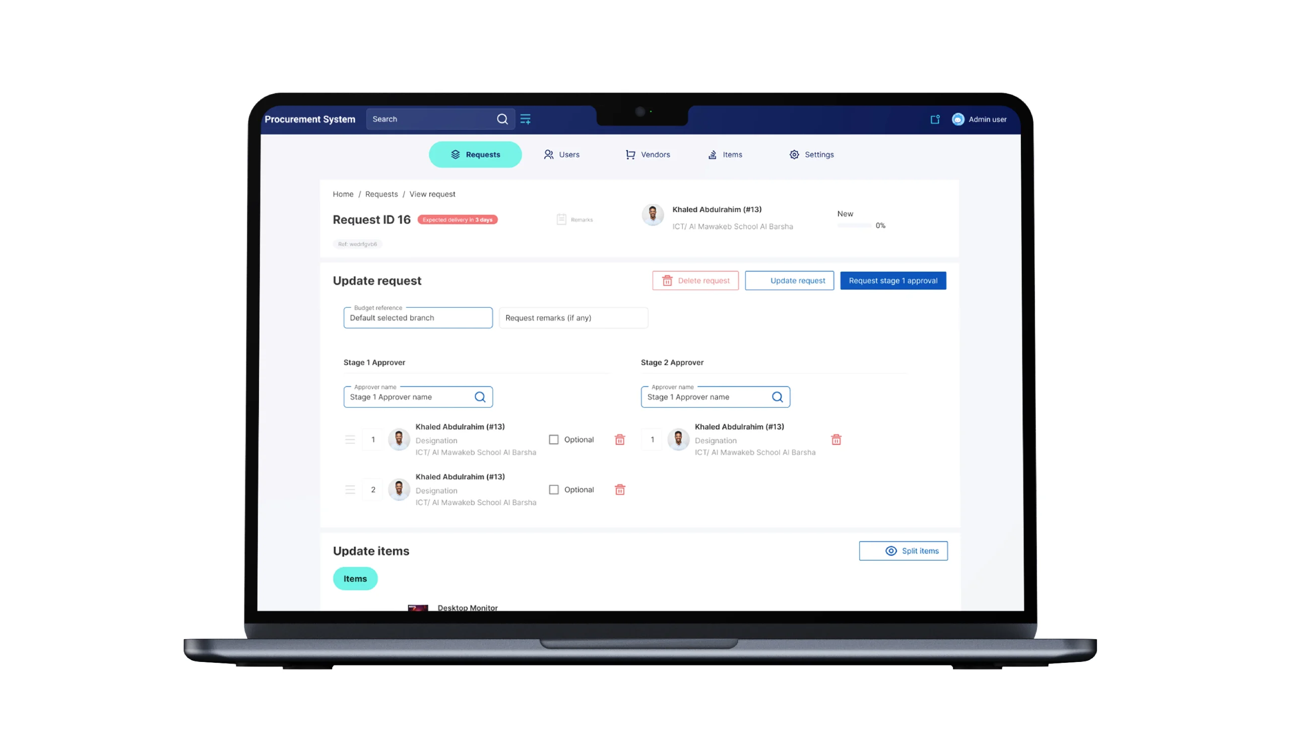Procurement System – End-to-End Custom Software powering a fully automated procurement workflow.